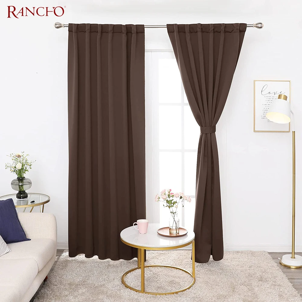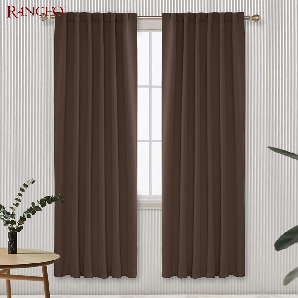 Modern Nice Solid Color Polyester Hotel Window Curtain Home Choice 100% Blackout Valance Design Brown Office Curtain